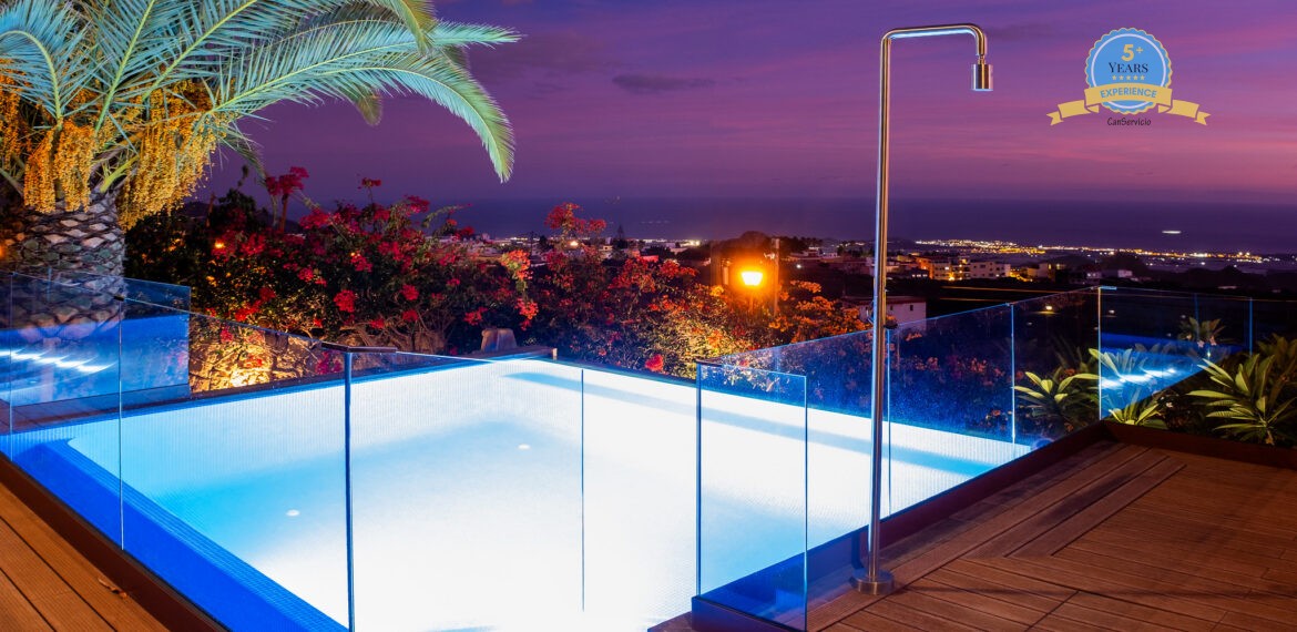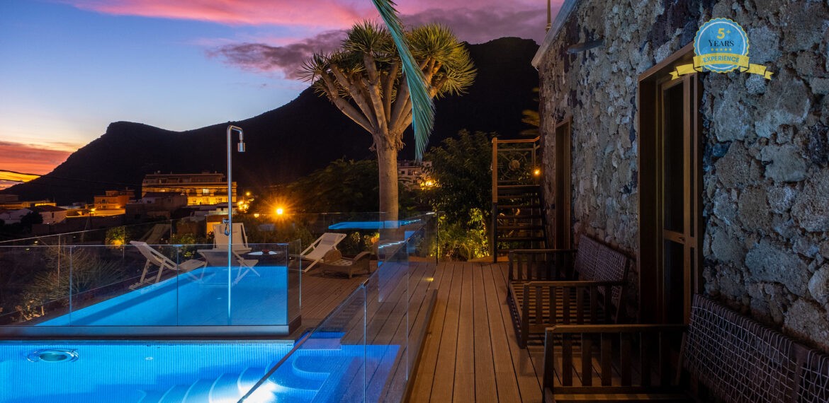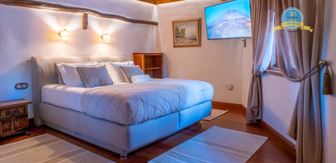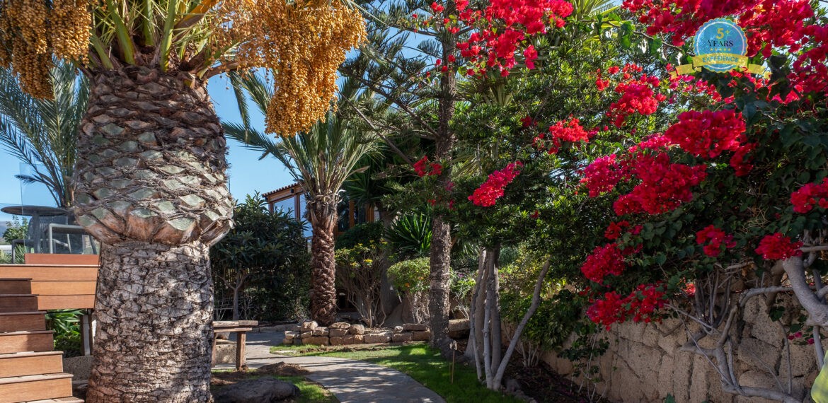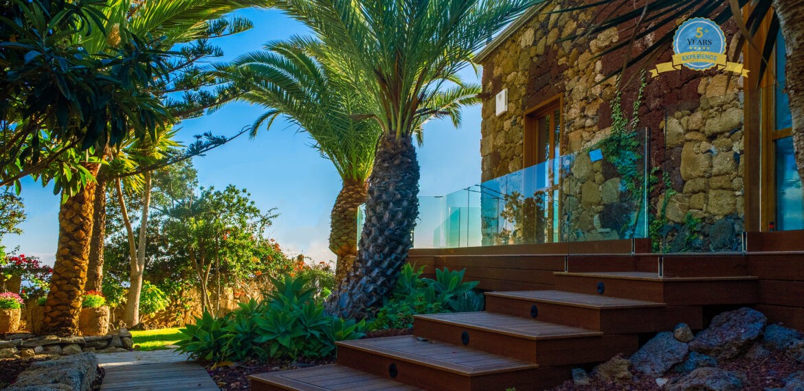Spacious Accommodation: Villa Serenitas in Arona offers six bedrooms and six bathrooms, complemented by a spacious living room. Guests enjoy sea, garden, and pool views from the terrace and balcony.