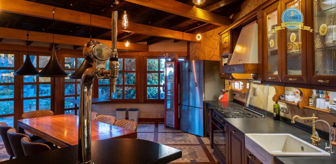 Modern Amenities: The villa features a sun terrace, garden, and free WiFi. Additional facilities include a lounge, shared kitchen, outdoor seating area, barbecue, and free on-site parking.